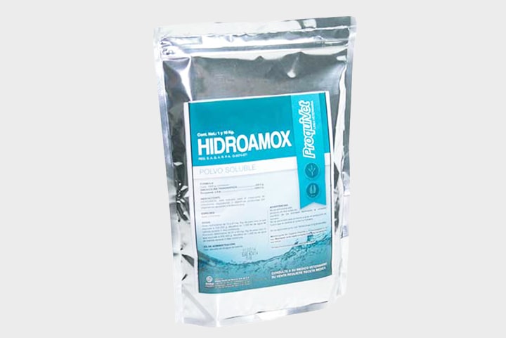 HIDROAMOX es polvo altamente soluble para su administración en agua de bebida con la finalidad de facilitar el tratamiento en casos agudos y en los que inclusive exista una baja en el consumo de alimento.