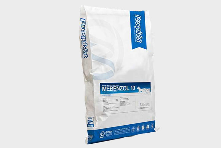 MEBENZOL-10 es una premezcla antiparasitaria de amplio espectro, con buena potencia y baja toxicidad, indicada para el tratamiento y control de las fases adultas, larvarias y huevecillos de los parásitos causantes de parasitosis que afectan a las aves, cerdos y ganado en edades diferentes.